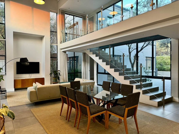 Luxurious 4-Bedroom Home in Steyn City’s Exclusive Origin Suburb Welcome to a masterpiece of modern living in the prestigious Origin Suburb of Steyn City. This luxurious 4-bedroom, 4.5-bathroom residence offers an unmatched blend of elegance, comfort, and natural beauty, making it the perfect home for discerning buyers. As you enter, you're greeted by a grand double-volume living area with a soaring vaulted ceiling, creating a sense of space and sophistication. The home is designed for year-round comfort, featuring a state-of-the-art Breezeair cold air induction system and air conditioning in every room. The fully equipped kitchen is a culinary enthusiast's dream, boasting premium Miele appliances, gas reticulation for the stove, and a built-in braai. The adjacent living area, centered around a stylish Morso wood-burning fireplace, invites warmth and relaxation. Step outside into your private oasis—the largest garden in Origin, beautifully nestled among mature trees. The garden surrounds a sparkling pool, offering a serene retreat for outdoor living. The newly paved courtyard and extra green-paved parking further enhance the property's appeal and functionality. The home's thoughtful design includes a ground-floor en-suite bedroom that opens directly onto the pool area, ideal for guests or as a luxurious master suite. Each of the four spacious bedrooms features ample cupboard space and private en-suite bathrooms, providing ultimate comfort and privacy. Additional features include a double garage, staff quarters, and meticulous attention to detail throughout, making this home an extraordinary opportunity to live in one of Steyn City’s most sought-after locations. Experience the pinnacle of luxury living—schedule your viewing today.